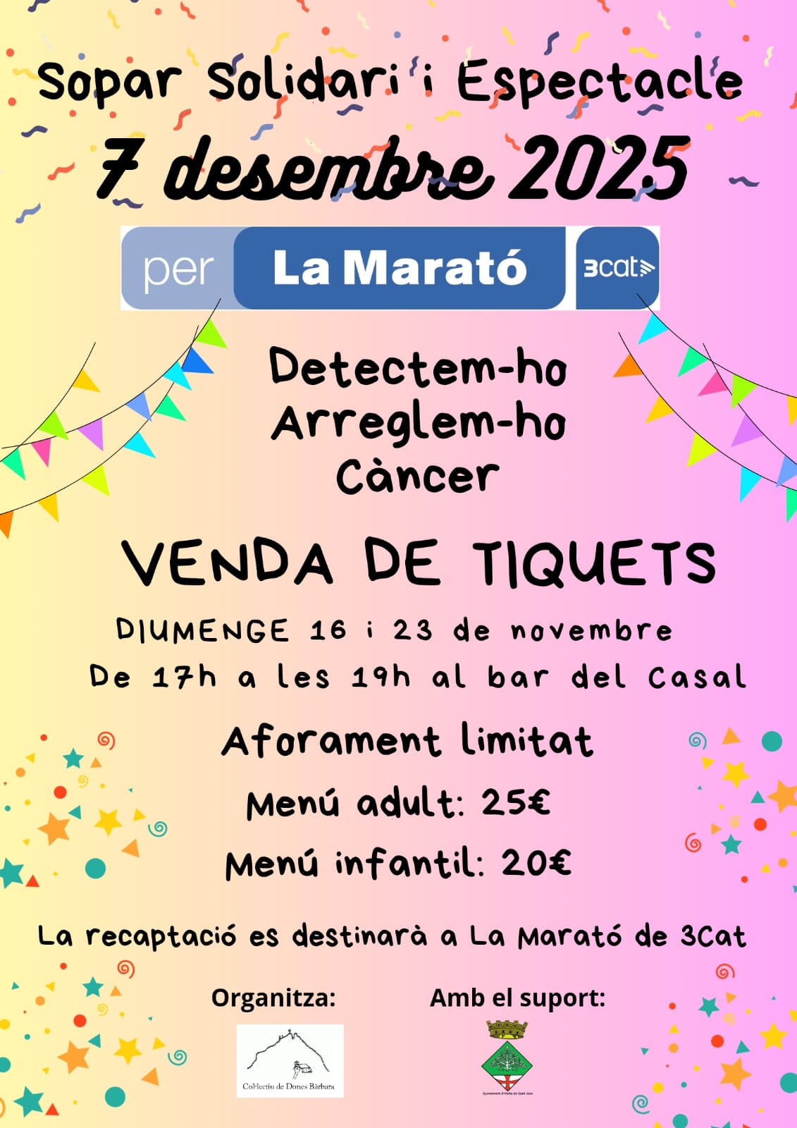 SOPAR / ESPECTACLE PER A COL·LABORAR AMB LA MARATÓ