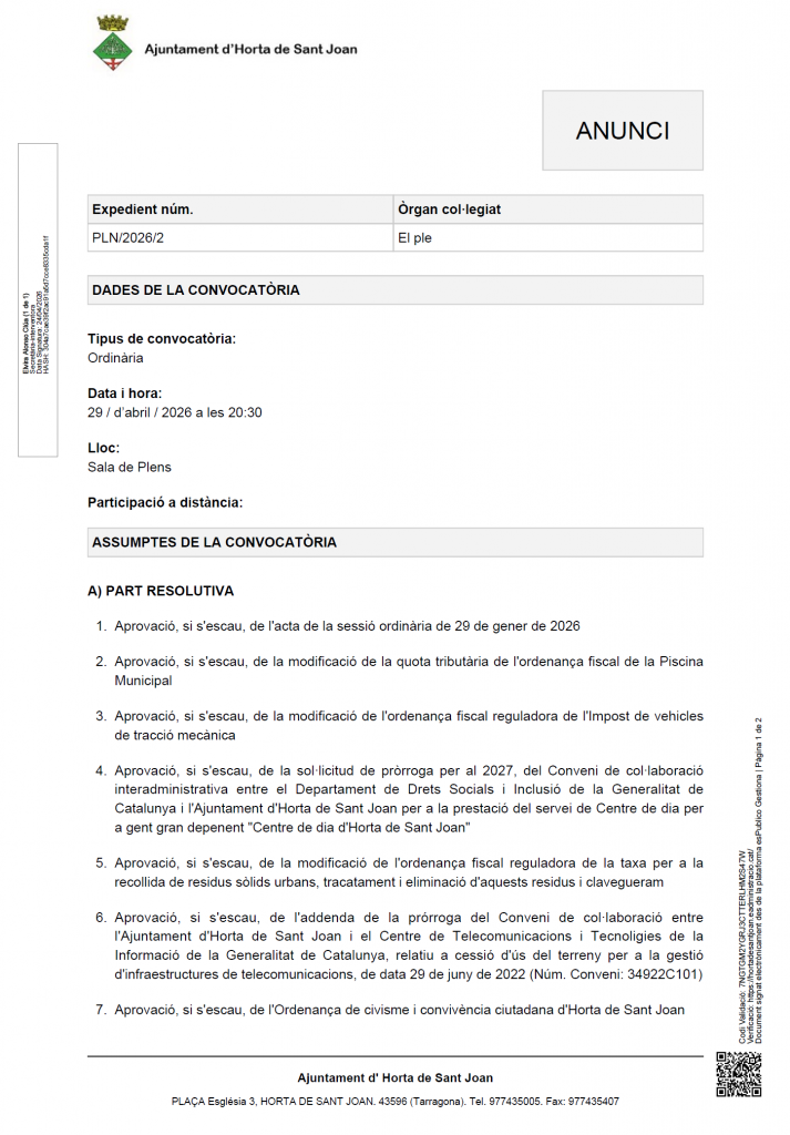 Agenda • Notícies Horta