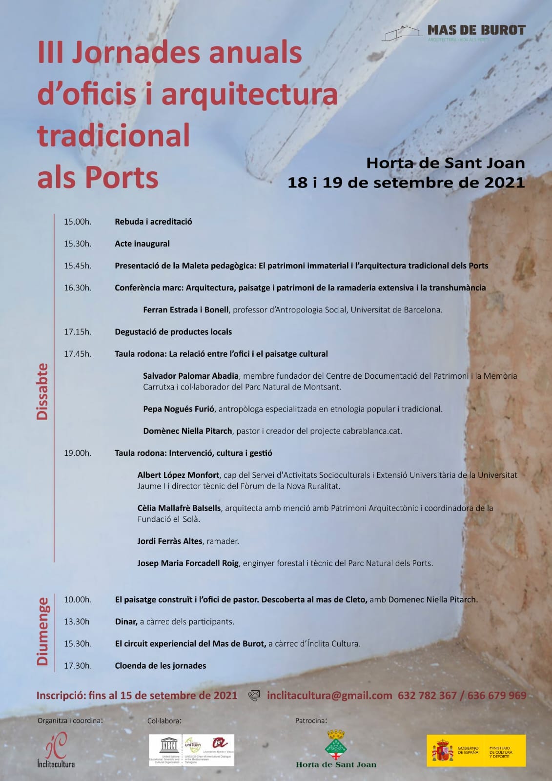 Els dies 18 i 19 de setembre, El Mas de Burot acull les III Jornades Anuals d'oficis i arquitectura tradicional als Ports.